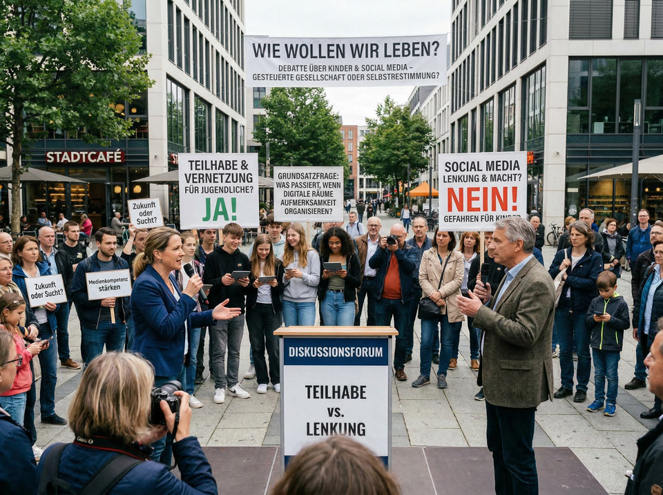 Kinder raus aus Social Media – eine heiße Debatte. Die einen sind für das Verbot, die anderen dagegen. Aber eigentlich geht es um eine Grundsatzfrage: Was passiert mit einer Gesellschaft, wenn schon die Jüngsten in jene digitalen Räume hineinwachsen, die Aufmerksamkeit nicht nur binden, sondern organisieren?